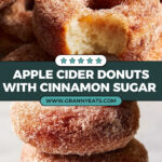 Apple Cider Donuts are truly best fresh, but if you do have leftovers, store them in an airtight container at room temperature for up to 2 days. I wait until they’ve completely cooled before sealing them up to keep the cinnamon sugar coating from turning soggy.