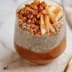 - Assemble the Pudding: Divide the chilled chia pudding evenly among 3 jars or bowls. Top each with the stewed apples, then sprinkle with the prepared crumble (about 2 tbsp per jar recommended). Optionally, serve with extra apple butter and a drizzle of maple syrup for added sweetness.