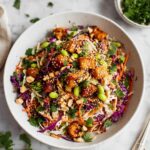 - Garnish and serve: Sprinkle chopped peanuts, extra cilantro, and sesame seeds over the top for added texture and flavor. Serve immediately and enjoy this fresh, crunchy, flavorful salad.