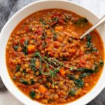 Red lentils cook faster and tend to break down, resulting in a more puree-like texture. If you prefer a creamy soup, red lentils work well, but for this recipe’s texture—where the lentils hold their shape—I recommend brown or green lentils.