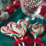 Create festive and delicious Christmas Candy Cane Heart Lollipops by pairing mini candy canes into heart shapes, filling them with smooth melted white chocolate, and topping with colorful holiday sprinkles. A fun and easy holiday treat that doubles as a charming gift or party favor.