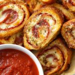 Pepperoni rolls are a delicious, savory snack featuring pizza dough rolled with pepperoni and mozzarella cheese, brushed with seasoned butter, baked until golden, and served with marinara sauce for dipping. This easy-to-make recipe combines classic Italian flavors in a portable, shareable form perfect for parties or casual meals.