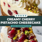 This Cherry Pistachio Cheesecake is a luscious and creamy dessert featuring a buttery graham cracker and pistachio crust, a smooth pistachio-flavored cheesecake filling, and a sweet cherry topping. Perfect for celebrations or a special treat, this recipe combines nutty and fruity flavors in a beautifully balanced dessert.