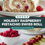 This festive Christmas Raspberry Pistachio Roulade is a light and elegant Swiss roll cake featuring a moist pistachio sponge filled with luscious white chocolate cream and fresh raspberries. Perfectly decorated with a sprinkle of chopped pistachios and fresh raspberries, this roulade is a stunning holiday dessert that combines nutty, fruity, and creamy flavors for a delightful treat.