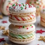 - Decorate: Drizzle melted white chocolate over the assembled macarons and sprinkle with red and green holiday sprinkles. Optionally, place edible gold stars on top for an extra festive touch.
