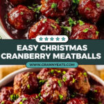 Quick Christmas Cranberry Meatballs are an easy, festive holiday appetizer featuring pre-cooked meatballs simmered in a tangy, sweet cranberry chili sauce. This crowd-pleasing dish comes together in just 25 minutes, making it perfect for holiday parties and gatherings.