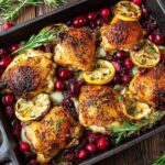 This Baked Cranberry Chicken with Rosemary is a perfect Thanksgiving dinner centerpiece, featuring juicy bone-in chicken pieces marinated with fragrant garlic, rosemary, and paprika. The dish is topped with a tangy-sweet sugared cranberry mixture and slow-baked to tender perfection, delivering a beautiful balance of savory and tart flavors that make it festive and comforting.