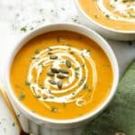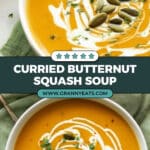 This Curried Butternut Squash Soup is a creamy, flavorful dish made with roasted butternut squash, aromatic curry powder, coconut milk, and warming spices. It’s a comforting vegan soup that’s perfect for chilly days and packs a delightful balance of sweet and savory flavors with a hint of spice. Garnish with toasted pumpkin seeds and a drizzle of full-fat coconut milk for an extra special touch.