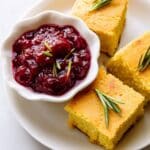 For holiday dinners, try serving cranberry sauce in a small clear glass bowl so the vibrant red color shines through. I’ve also dolloped it over whipped cream cheese as a quick holiday appetizer. It makes even simple dishes feel festive and special!