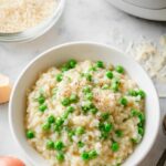 This easy and creamy Rice Cooker Risotto simplifies traditional risotto preparation by using a rice cooker to achieve perfectly cooked Arborio rice infused with shallots, garlic, and vibrant lemon flavors. Enhanced with sweet peas and Parmesan cheese, this comforting dish is effortlessly prepared with minimal hands-on time, making it perfect for a quick yet elegant meal.