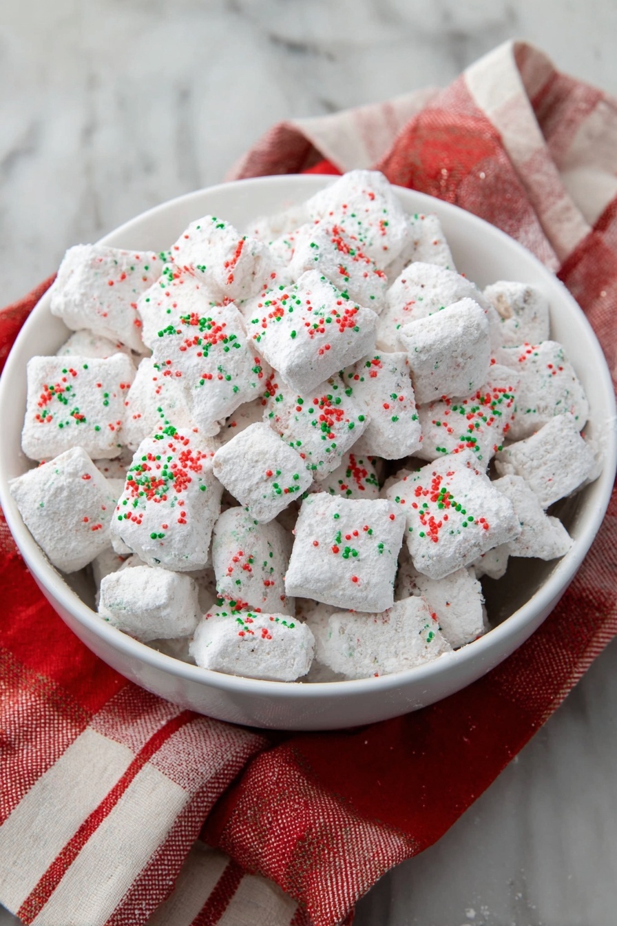 - Perfectly Festive: The addition of colorful sanding sugar turns classic puppy chow into a holiday showstopper.