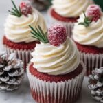 These festive Christmas Red Velvet Cupcakes are moist, tender, and perfectly flavored with a hint of cocoa and tang from buttermilk, topped with creamy vanilla frosting and adorned with fresh raspberries and rosemary sprigs for a delightful holiday treat. Ideal for holiday parties or as a sweet seasonal gift, they bring a bright pop of red and elegant presentation to your dessert table.