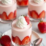 A light and creamy strawberry mousse made with cream cheese or coconut cream, yogurt or additional cream cheese, and sweetened with powdered sugar. This easy no-bake dessert blends fresh strawberries for a fresh, fruity flavor and a smooth, airy texture, perfect for a quick and delightful treat.