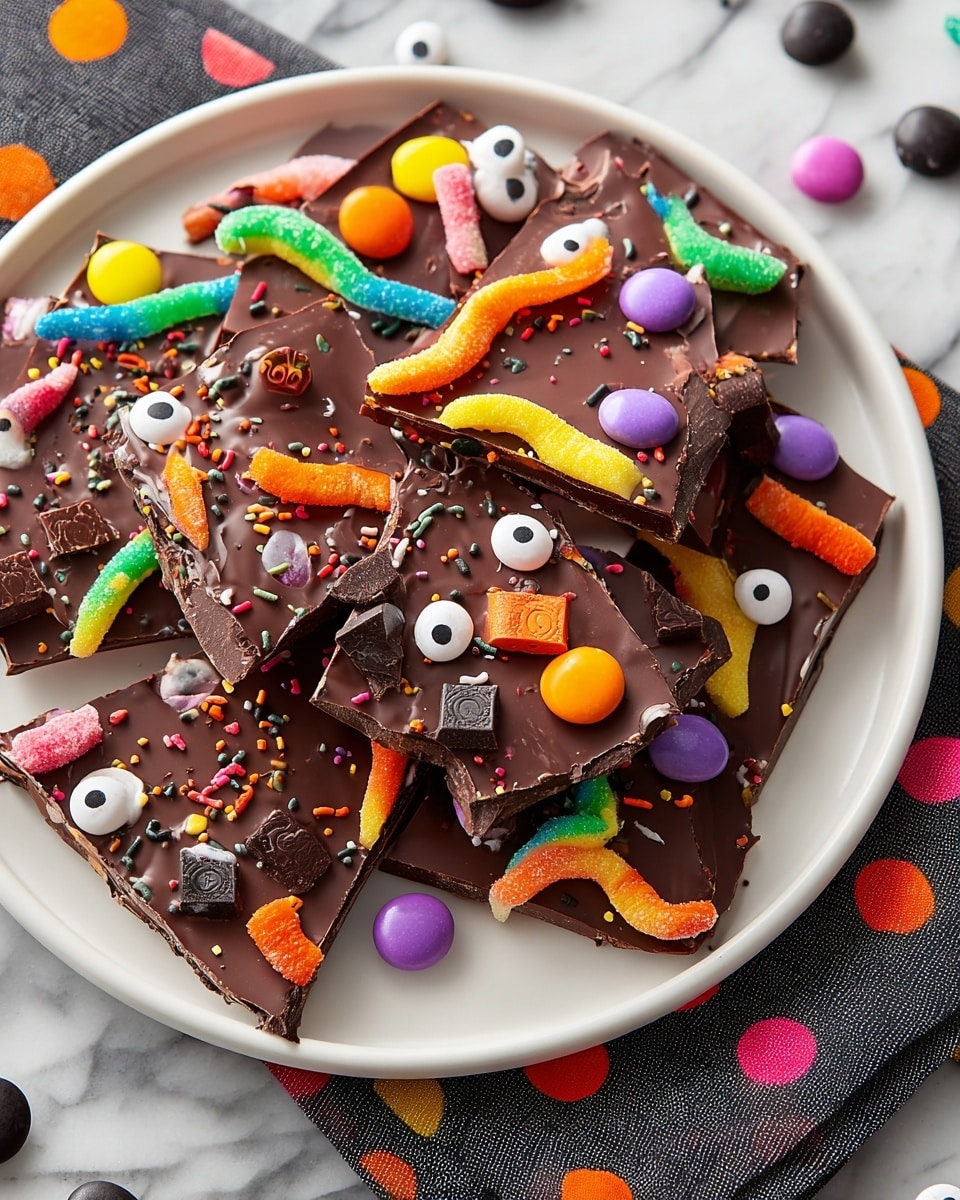 I usually keep it simple and let the bark shine on its own, but if you want to get fancy, dusting a tiny bit of edible glitter or adding a few extra candy eyeballs on top right before serving gives it a spooky shimmer. Sometimes, I melt a bit of white chocolate and drizzle over the top for a spiderweb effect—so fun!