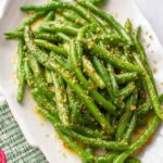 For holidays or dinner parties, I’ve arranged the green beans in a circular pattern on a large platter, drizzling the sauce over right before guests arrive, then garnishing with edible flowers and lemon slices for an eye-catching look. It’s such a simple dish but it can easily look like something straight from a restaurant menu with a thoughtful presentation.