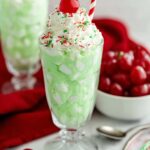 - Garnish and Serve: When ready to serve, top the fluff with whipped cream, sprinkle red and green sprinkles over it, and add a maraschino cherry on top for a festive touch. Enjoy immediately.