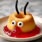 I like to keep garnishes playful but simple — a few extra candy eyeballs scattered around the plate add whimsy, and some plump whole strawberries complement the strawberry goo nicely. If you want to add a little extra color pop, edible glitter or colored sugar sprinkles work great without overwhelming the “gross guy” look.