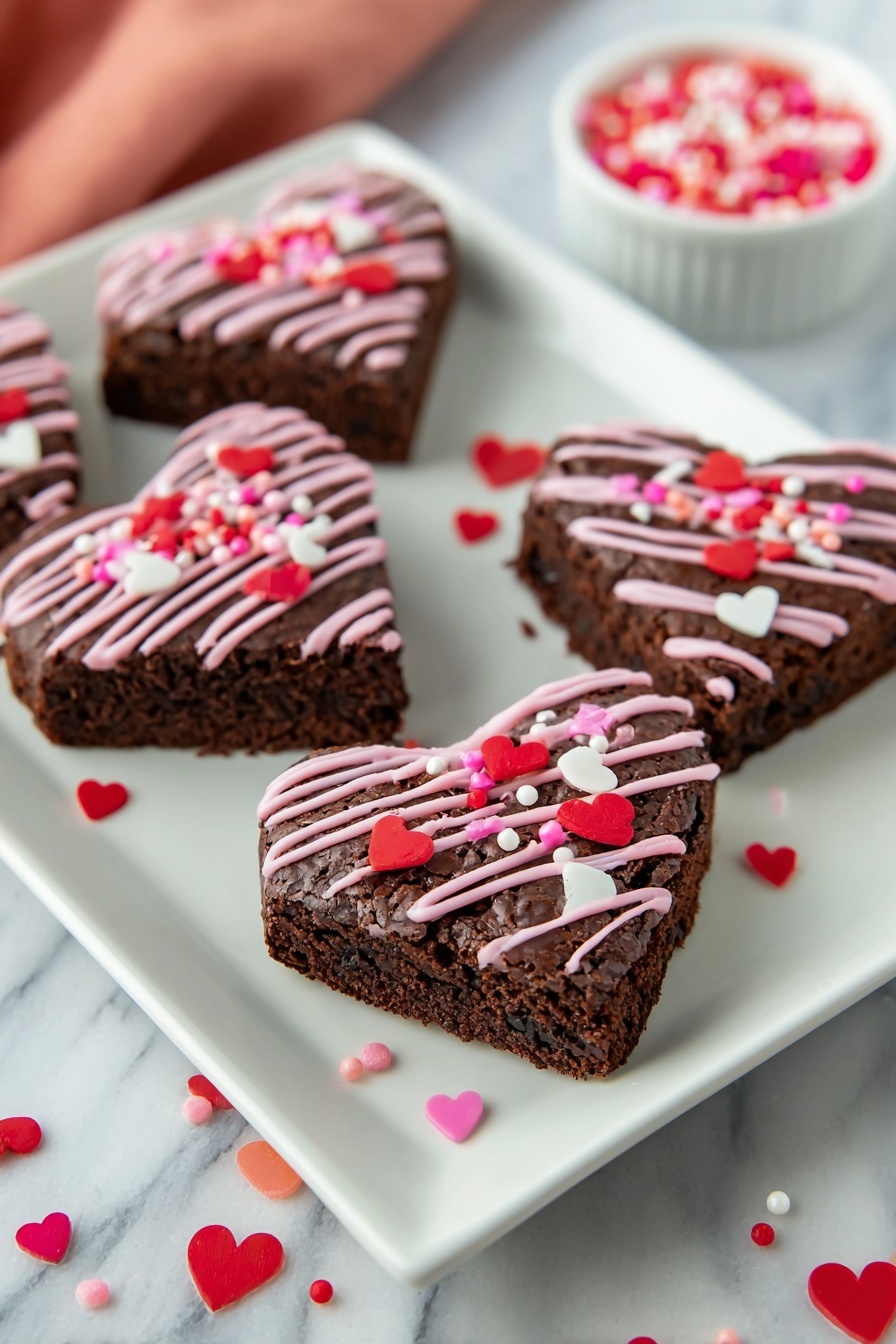 I love topping my brownies with a light dusting of powdered sugar — it adds that pretty, snowy look without overpowering the chocolate. Sometimes I drizzle a little melted white or dark chocolate over the hearts for a professional touch. Fresh berries or a mint leaf on top can also brighten up the presentation and add an extra pop of color and flavor.