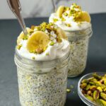 - Divide and serve: After refrigeration, separate the pudding into three individual bowls or jars for convenient morning servings. Add your choice of toppings such as crushed pistachios, sliced bananas, dark chocolate chips, and whipped cream.
