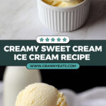 A rich and creamy homemade sweet cream ice cream recipe, available in two variations: a classic version with simple ingredients and a Cold Stone Creamery copycat version featuring corn syrup and cornstarch for a smoother, softer texture. Perfect for ice cream lovers seeking a deliciously smooth and sweet frozen treat.