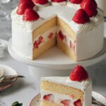 This Japanese Strawberry Cake is a delicate and airy sponge cake layered with lightly sweetened whipped cream and fresh macerated strawberries. Featuring a moist texture from a gentle water bath baking technique and a smooth whipped cream frosting, this cake captures the subtle sweetness and freshness that makes it a classic in Japanese patisserie. Perfect for special occasions, it combines elegant simplicity with fresh fruit flavors.