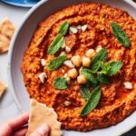 Transfer your dip to a pretty bowl, sprinkle fresh chopped mint on top, and serve alongside warm pita bread. The fresh mint adds a lovely pop of color and that cool contrast to the spicy, smoky dip. You’ll find this spread disappears fast once people get a taste—trust me on that!