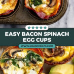 Delicious and savory Mushroom Spinach Bacon Egg Cups that combine crispy bacon, sautéed mushrooms, fresh spinach, and fluffy eggs, all baked to perfection in a muffin tin. These protein-packed egg cups are perfect for an easy breakfast or brunch and can be customized with your favorite cheese or made cheese-free for paleo or Whole30 diets.