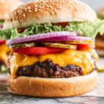 This classic hamburger recipe features juicy ground chuck patties seasoned with a flavorful spice blend and grilled to perfection. Served on toasted buns with melted American cheese and a variety of fresh toppings, it’s a timeless and satisfying meal perfect for any barbecue or casual dinner.