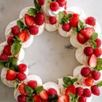 - Assemble the Wreath: Spoon or pipe the whipped cream onto each meringue nest, then decorate generously with fresh berries and mint leaves for a fresh look and flavor.
