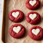 These Red Velvet Cookies offer a delightful twist on the classic dessert, featuring a tender, cocoa-infused dough with a striking red hue. Each cookie is topped with a white chocolate peanut butter heart for a perfect balance of sweet and rich flavors. Easy to prepare and perfect for festive occasions or everyday treats, this recipe yields soft, crackly cookies that are as beautiful as they are delicious.