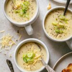 I’m a sucker for a little extra texture and freshness, so I always top my soup with thinly sliced green onions and a handful of extra sharp cheddar cheese. If I’m serving company, a sprinkle of crispy bacon bits or a little smoked paprika can be a fun surprise, too.