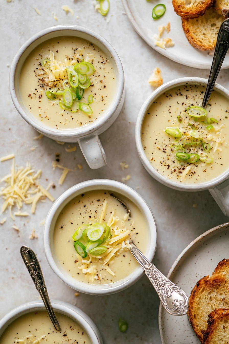 - Serve and Garnish: Ladle soup into bowls and garnish with sliced green onions and extra cheddar cheese. Serve alongside croutons, toasted sourdough, or your preferred bread for dipping.