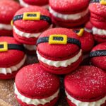 Delight in these festive Santa Claus Macarons featuring delicate red almond meringue shells, decorated with royal icing to create Santa’s iconic belt and buckle, and filled with a luscious sugar cookie buttercream enriched with toasted coconut. A perfect holiday treat combining classic French macaron technique with seasonal charm.