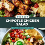 In a large bowl, combine the chopped romaine and veggies with cooked black beans, corn, and quinoa. Crumble cotija cheese and toss it in. Pour half the chipotle honey vinaigrette over the salad and mix everything thoroughly. Then add the cubed chicken on top and a few crushed tortilla chips for crunch. Taste and drizzle more dressing if needed. This layering keeps textures interesting and flavors balanced with every bite.