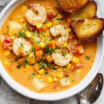 This Shrimp and Chorizo Chowder is a hearty and flavorful soup that combines the smoky, spicy richness of Spanish chorizo with tender shrimp, creamy half and half, and fresh vegetables. Perfect for a comforting meal, this chowder blends savory ingredients like smoked paprika, diced tomatoes, and potato to create a satisfying dish served best with crispy baguette toasts.