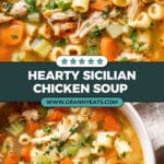 This hearty Sicilian Chicken Soup is a comforting blend of tender chicken thighs simmered with fresh vegetables, potatoes, and ditalini pasta in a flavorful broth. Perfect for family meals, this recipe combines traditional Mediterranean ingredients to create a nourishing and satisfying dish.