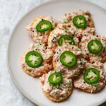 - Assemble and serve: Spoon about 1 heaping tablespoon of the spicy tuna mixture onto each crispy rice rectangle. Garnish with black sesame seeds and a thin slice of jalapeño. Drizzle with extra spicy mayo if desired. Serve immediately for best texture and flavor.