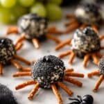 - Chill before serving: Wrap the finished spider cheeseballs tightly in plastic wrap and refrigerate for at least 30 minutes to firm up before serving. Serve them with additional pretzels and crackers for guests to enjoy alongside.