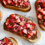 - Assemble the Bruschetta: Spread a generous layer of the Nutella cream cheese mixture onto each cooled toast slice. Top each with diced strawberries evenly distributed.