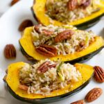 PrintStuffed Acorn Squash with Herbed Rice, Pecans, and Cheese Recipe