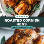 Some of my favorite sides to pair with this recipe are creamy mashed potatoes or a savory wild rice pilaf. Roasted root vegetables or a simple green salad with a light vinaigrette balance the rich hens perfectly. If it’s holiday time, a classic green bean casserole or a warm butternut squash soup rounds out the meal beautifully.
