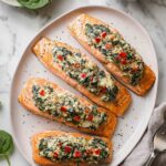 This Stuffed Salmon with Spinach & Feta is a flavorful and healthy dish that combines tender salmon fillets filled with a savory mixture of sautéed spinach, roasted red peppers, and creamy feta cheese. Ready in just 30 minutes, it’s perfect for a nutritious weeknight dinner that’s both simple and impressive.