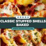 Classic Stuffed Shells is a comforting Italian-American baked pasta dish featuring jumbo pasta shells filled with a creamy ricotta and mozzarella cheese mixture, layered with marinara sauce, and topped with melted mozzarella and Parmesan cheese. This hearty recipe is perfect for family dinners or gatherings, combining rich cheese flavors with savory Italian seasoning in a delicious baked casserole.