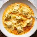 For a dinner party, I like serving the soup in clear glass bowls so the vibrant red curry broth and plump dumplings are eye-catching. Adding edible flowers or delicate Thai basil leaves as a garnish adds a beautiful touch. You can also present the dumplings on a platter with the soup poured tableside for a bit of fun!
