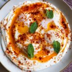 Turkish Eggs, or Cilbir, is a traditional Turkish breakfast dish featuring perfectly poached eggs served atop a creamy, garlicky yogurt sauce infused with fresh herbs. The dish is finished with a drizzle of spiced melted butter, offering a comforting blend of creamy, tangy, and slightly spicy flavors that’s simple yet elegant.