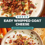 This Whipped Goat Cheese recipe is a creamy, tangy cheese spread delicately enhanced with crispy pancetta and toasted panko breadcrumbs. Perfect as an appetizer, it pairs beautifully with assorted vegetables, toasted bread, and crackers for a delightful party snack or light meal.