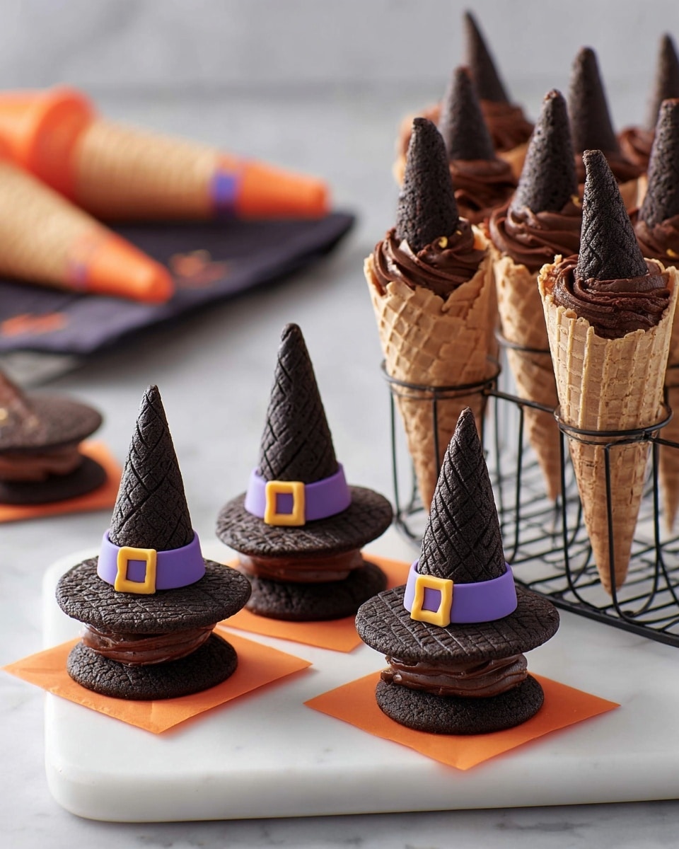 - Mini Cones: Use smaller cones for bite-sized witch hats perfect for kids’ parties where little hands want less mess.